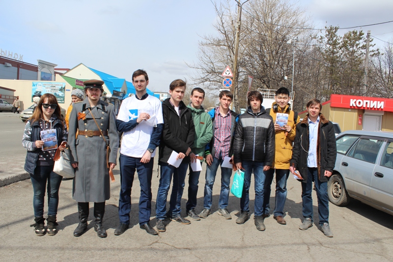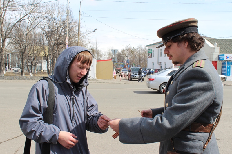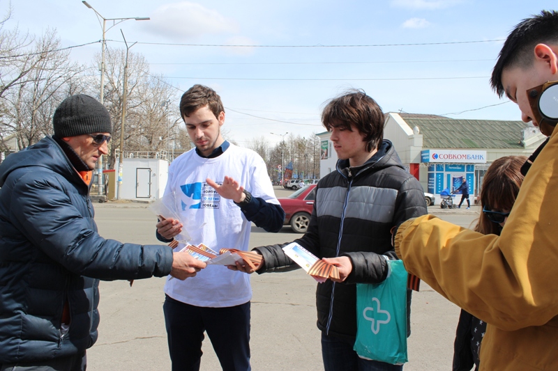 Участники акции раздали около 1000 Георгиевский ленточек, которые являются символом, олицетворяющим подвиг советского народа и его Победы в Великой Отечественной войне.